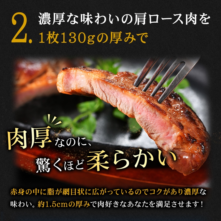 濃厚な味わいの肩ロース肉を1枚130gと厚切りにカットしました。